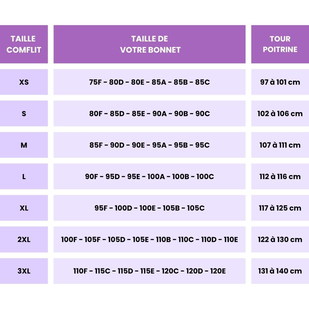 Si vous hésitez entre deux tailles, nous vous conseillons de choisir la plus petite pour un meilleur maintien et plus de confort.