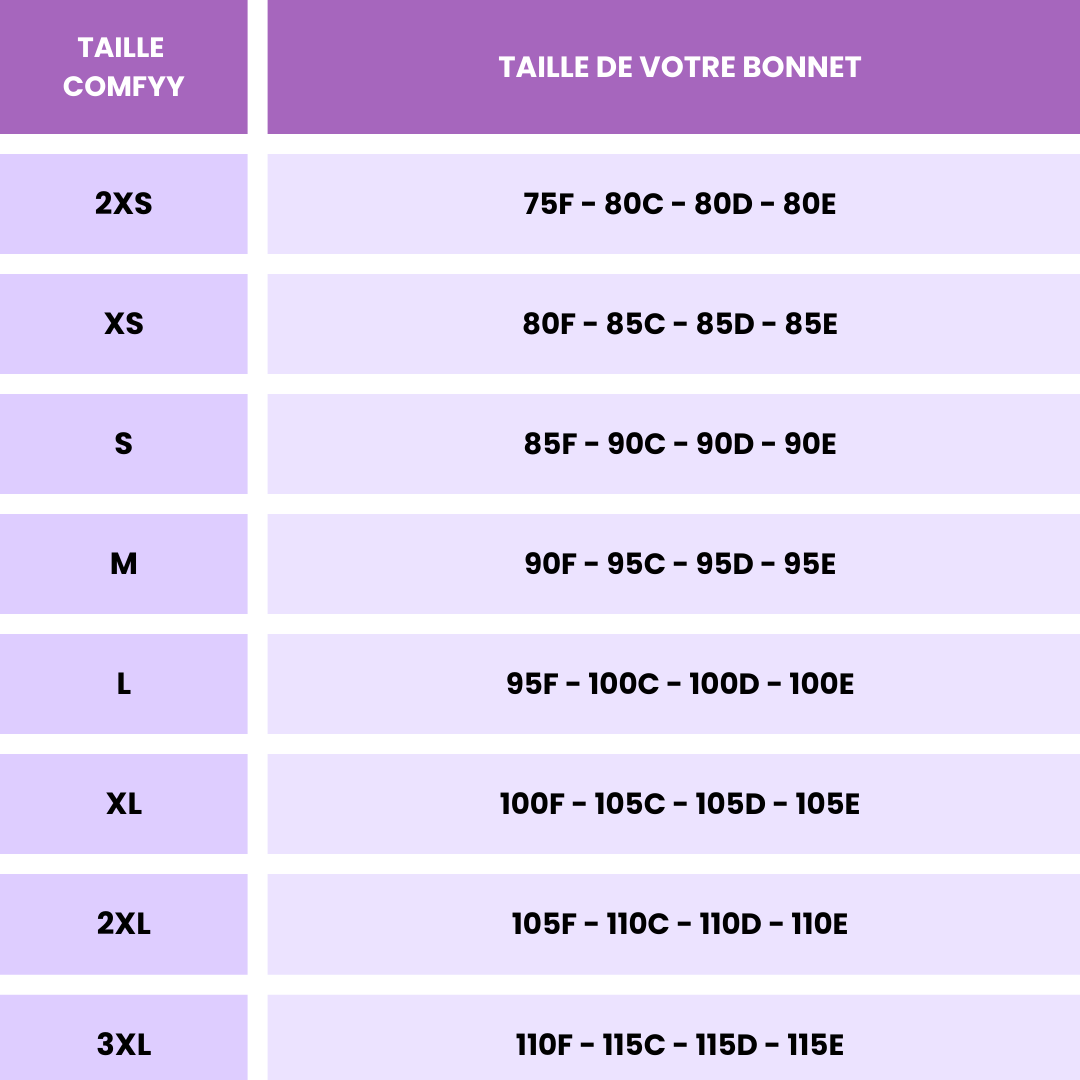 - Repérez votre taille de bonnet actuelle (colonne de droite)